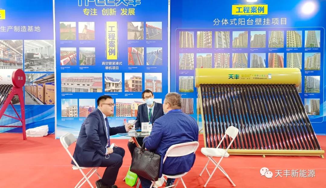 每次參加行業相關會展,天豐新能源都是誠意滿滿,攜帶優質產品精彩亮相。在本次展會上,天豐精心準備太陽能光熱全品類設備矩陣,涵蓋平板、水箱、集熱等多種光熱硬核產品,可精準覆蓋高層建筑、陽臺壁掛、戶式、大型集熱等多個領域,滿足用戶日益增長的多元化需要。